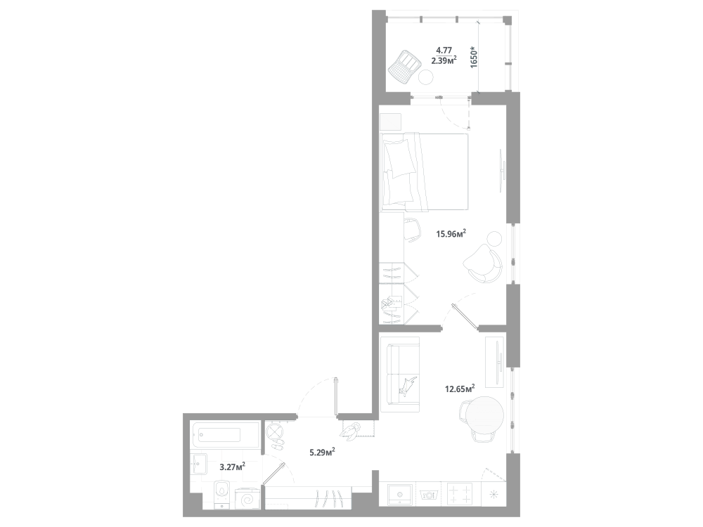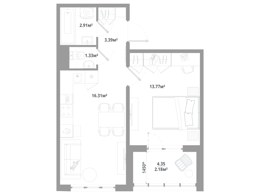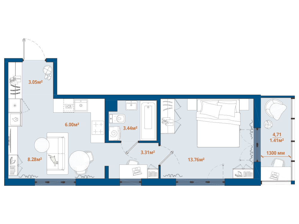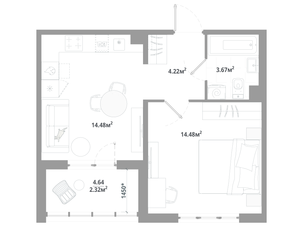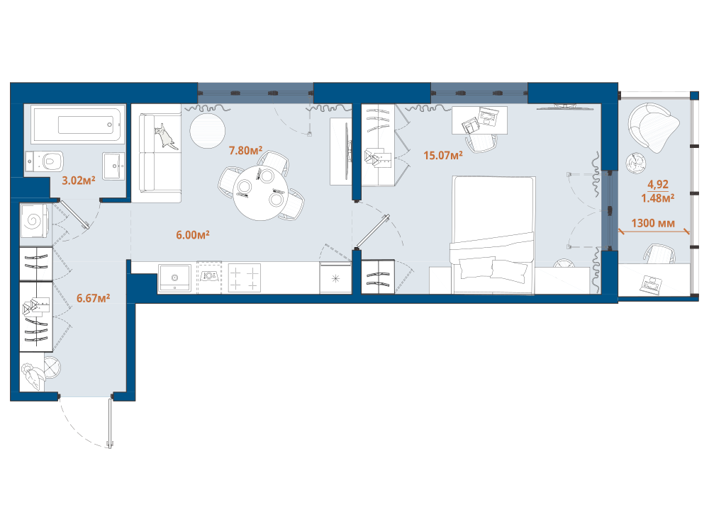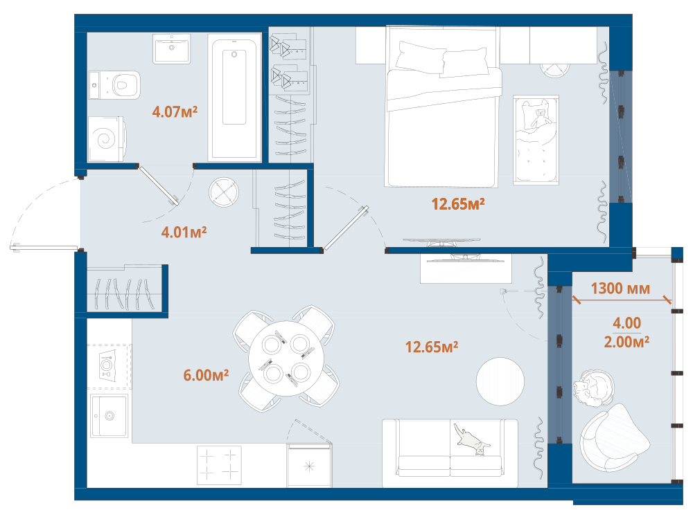 1-комнатная 40.22 м2