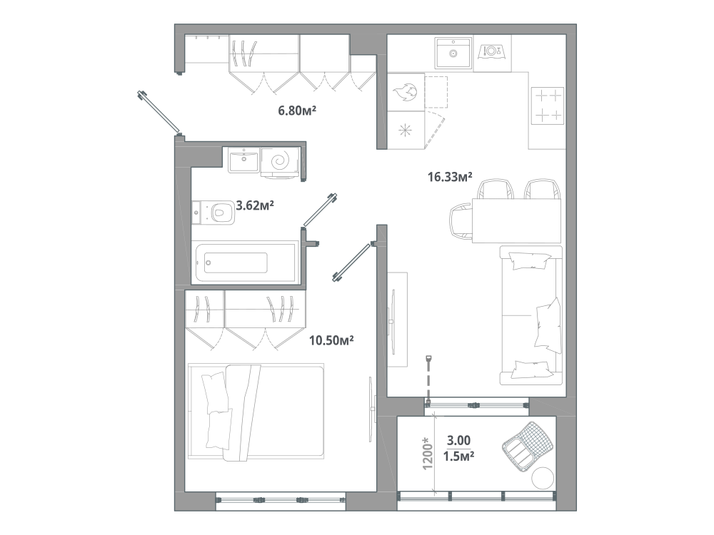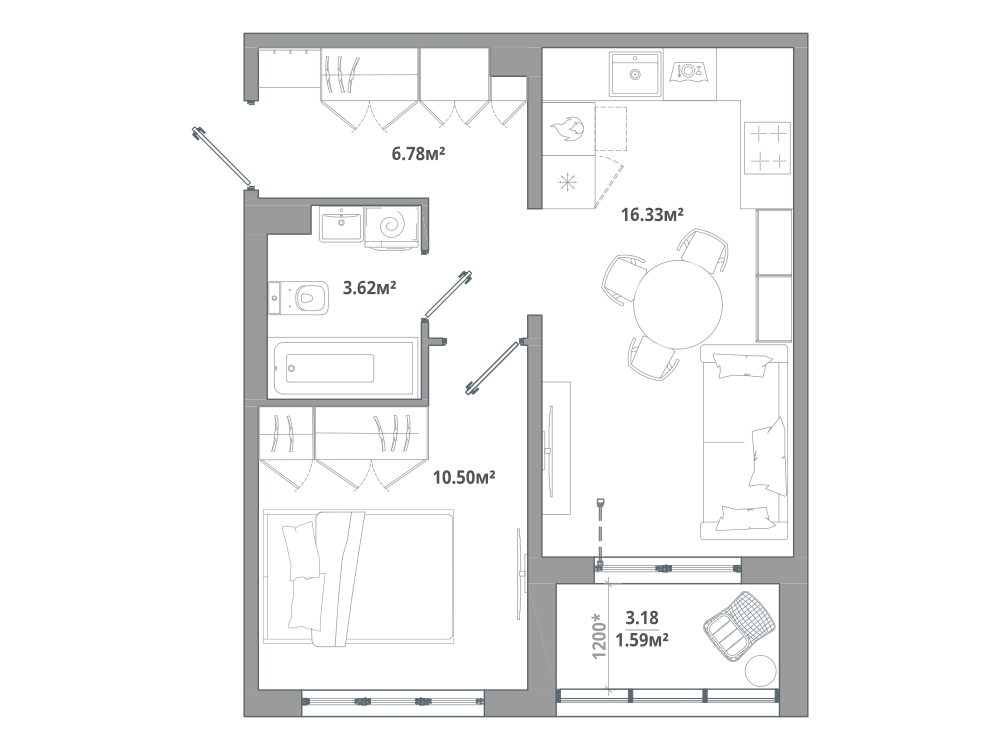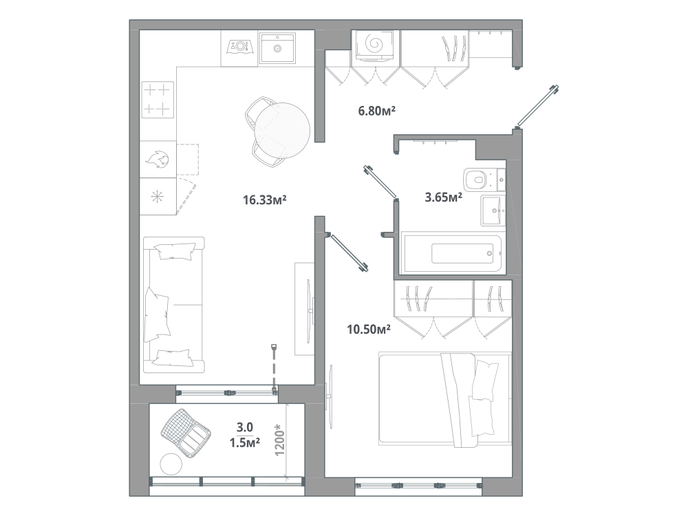 1-комнатная 37.03 м2