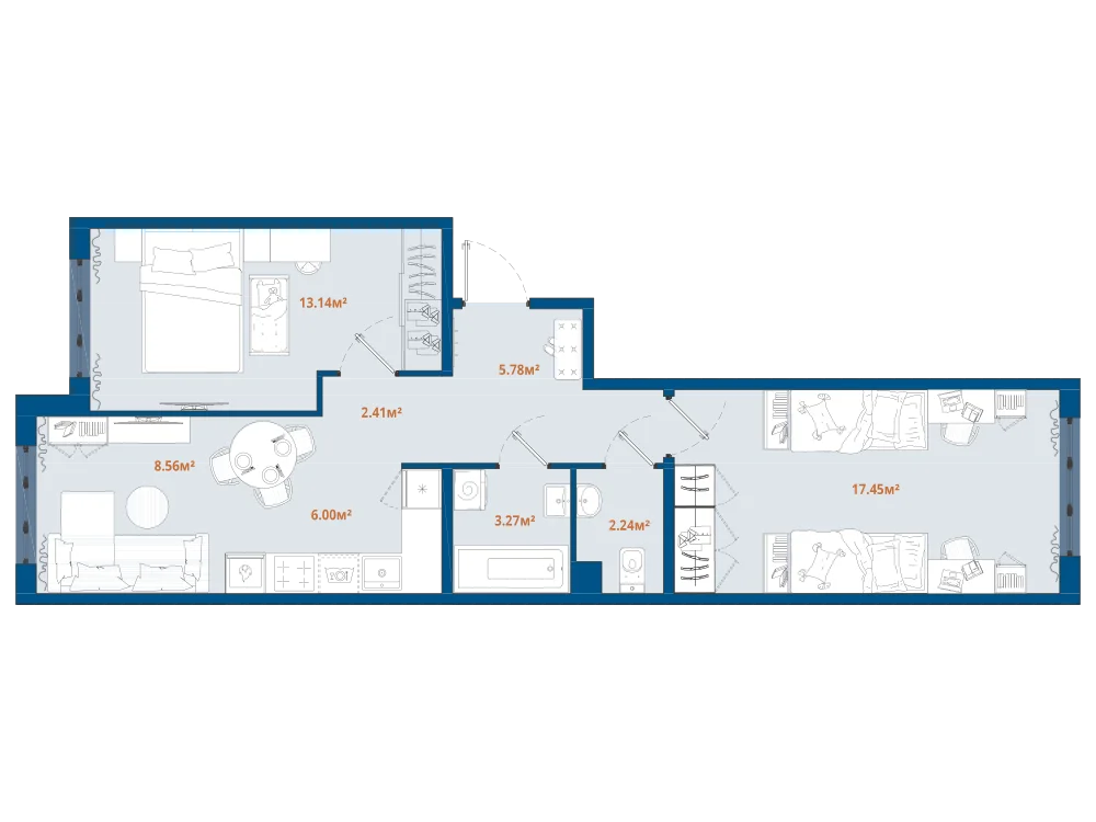 2-комнатная 58.9 м2