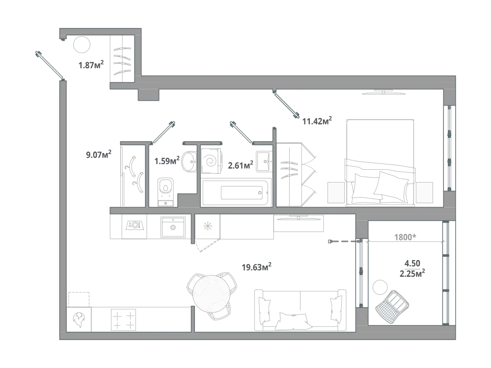 1-комнатная