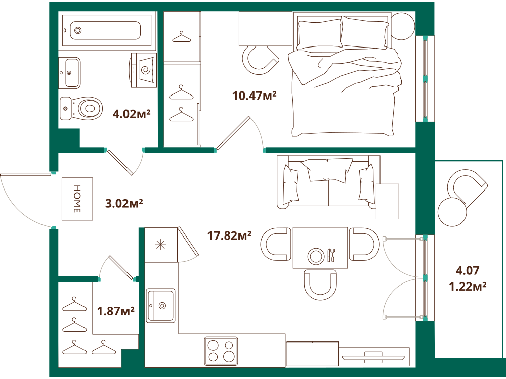 1-комнатная 39.34 м2