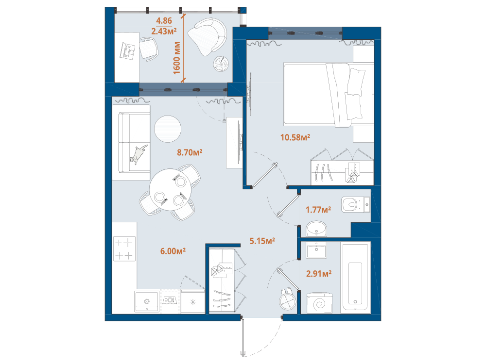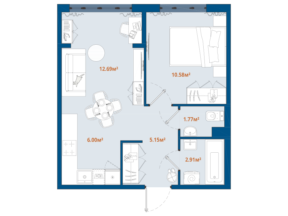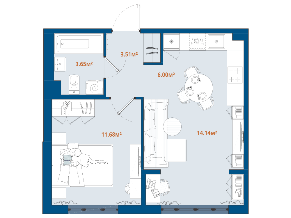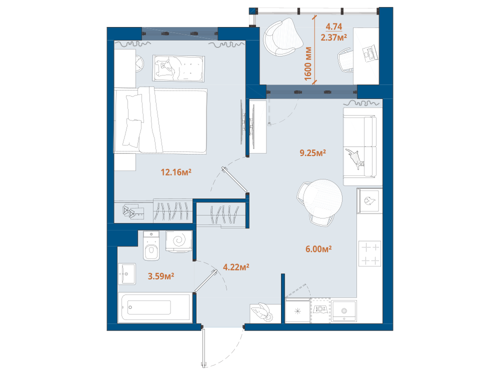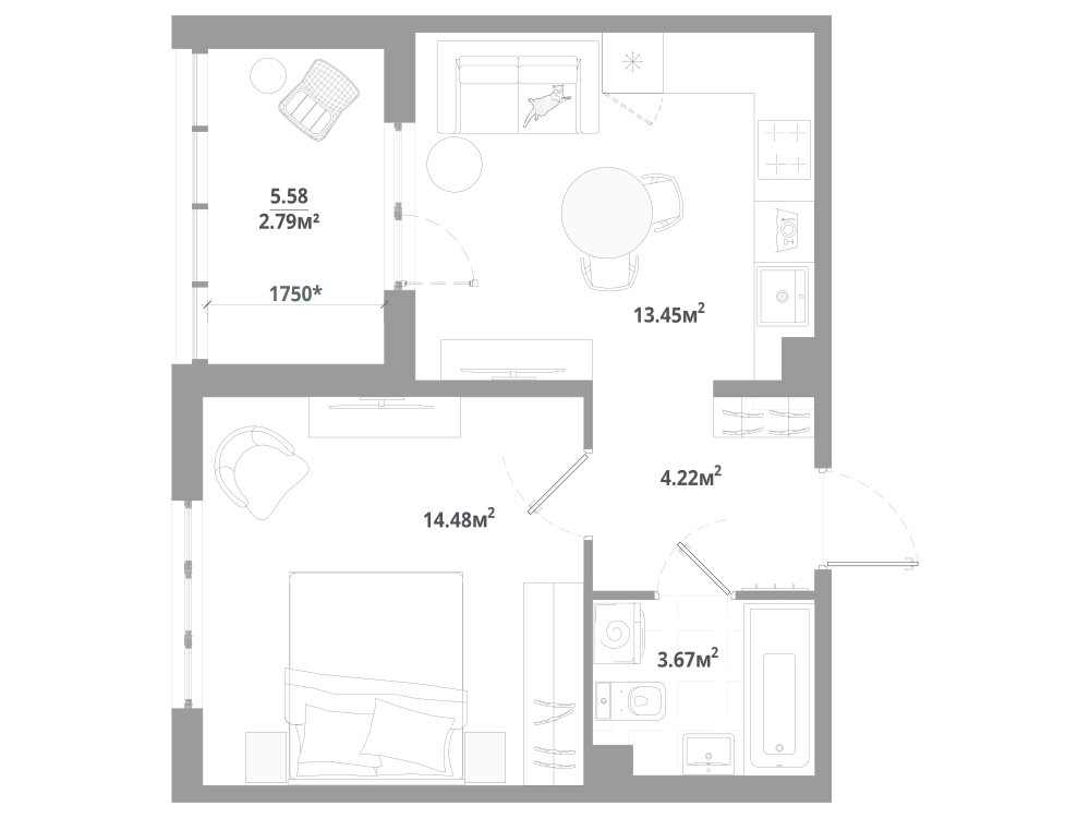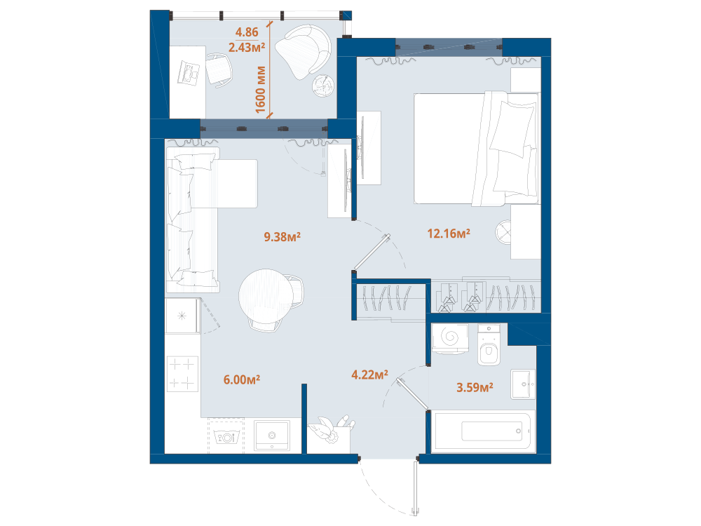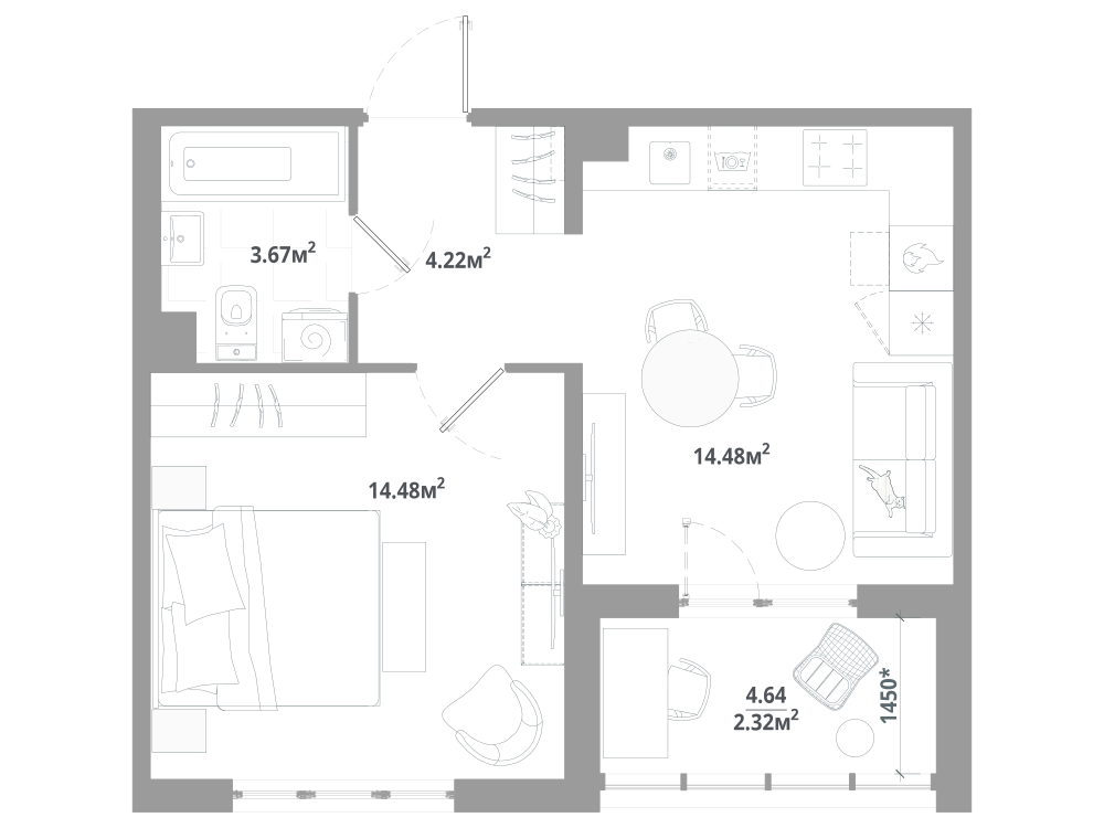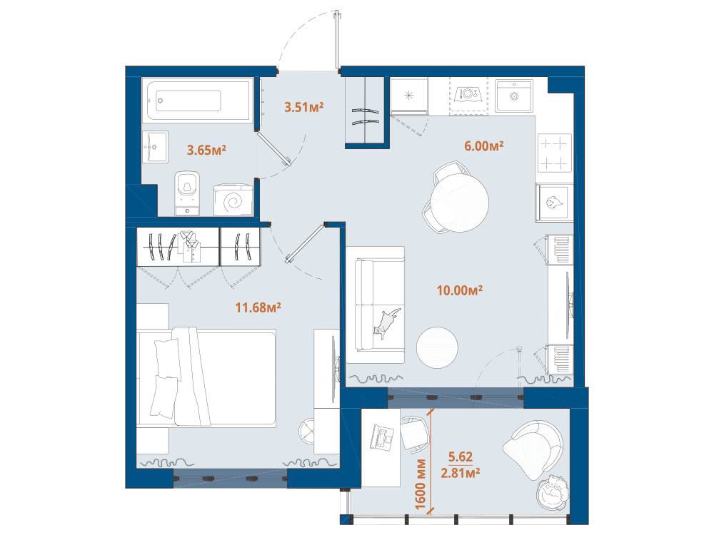 1-комнатная 39.61 м2