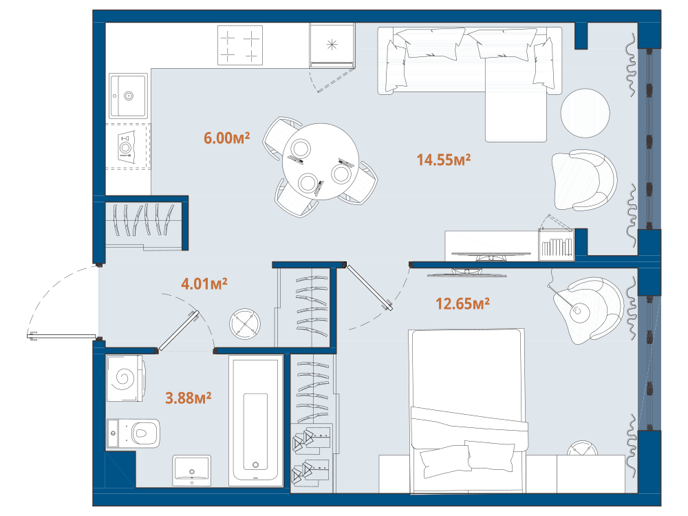 Покрасить стены в любимый цвет, заказать мебель, которую давно хотели и, наконец, просто начать обживать квартиру приятными мелочами — чтобы приблизить эти моменты, мы взяли на себя чистовую отделку. Цветовая палитра будет представлена в двух вариантах — на ваш выбор.