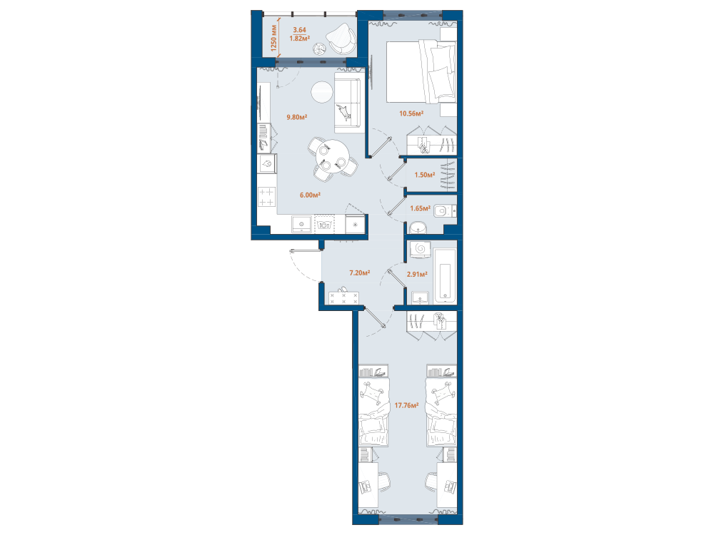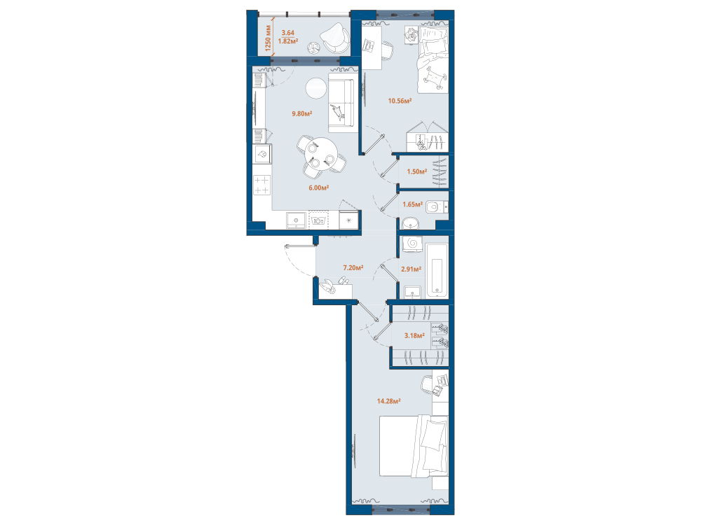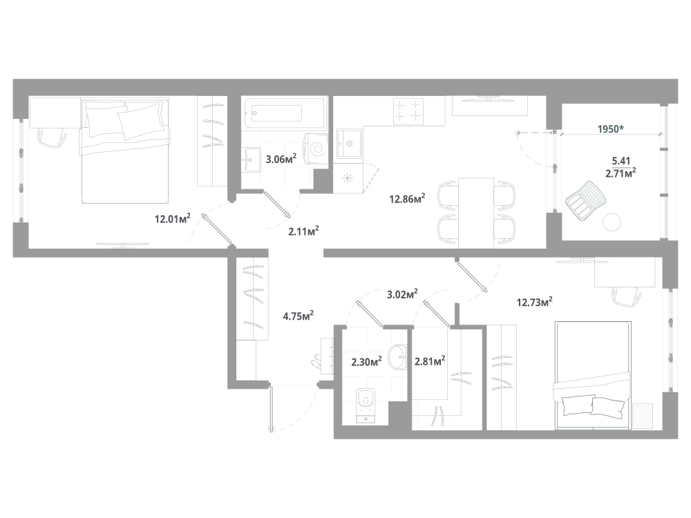 2-комнатная 58.55 м2