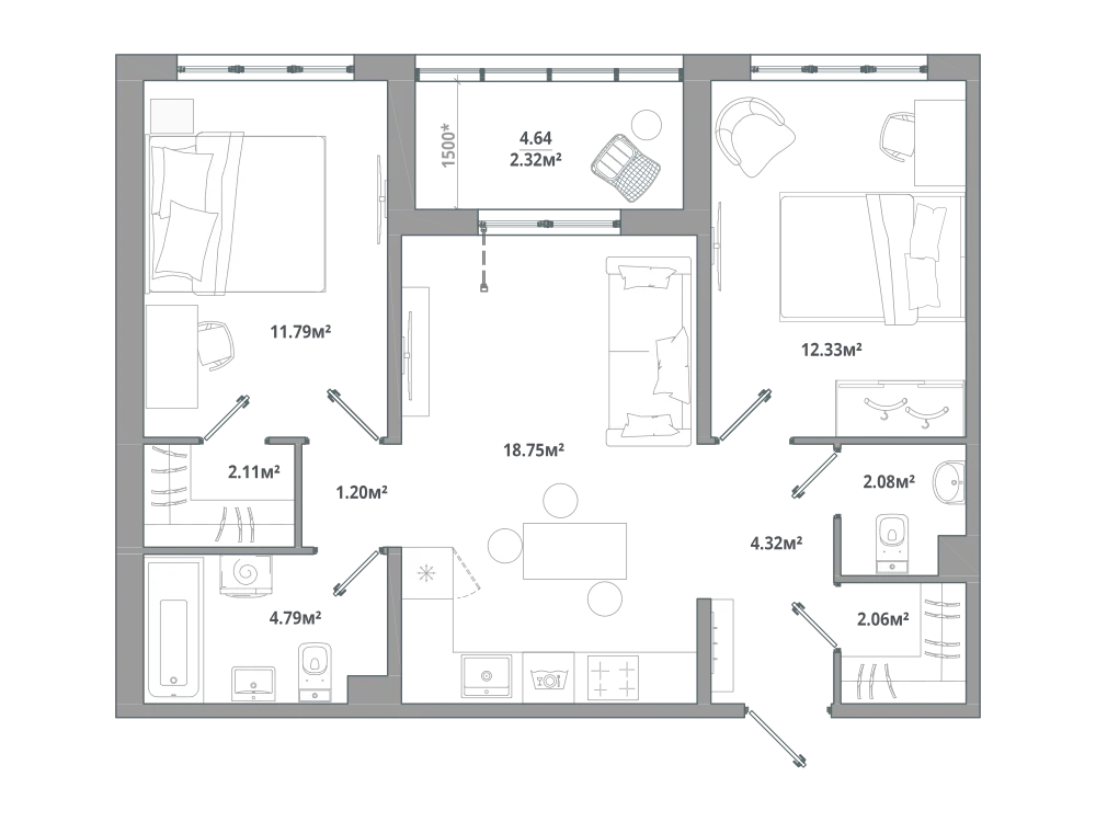 2-комнатная 65.22 м2