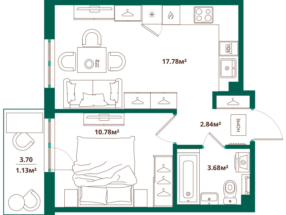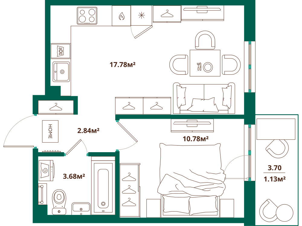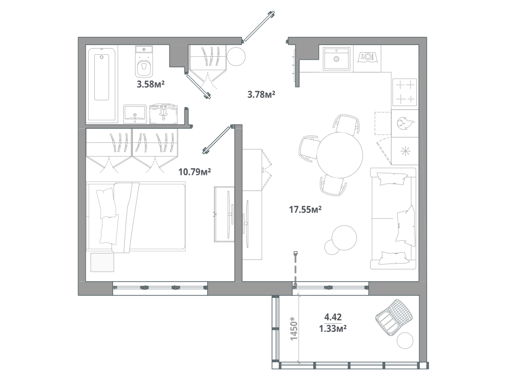 1-комнатная 35.95 м2