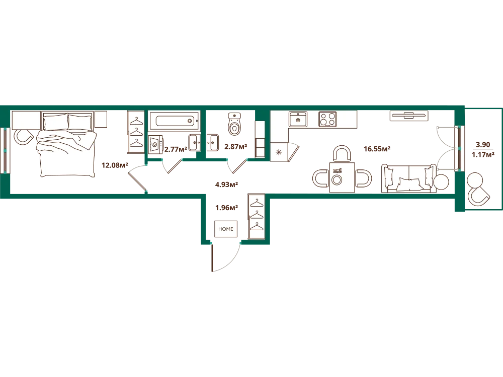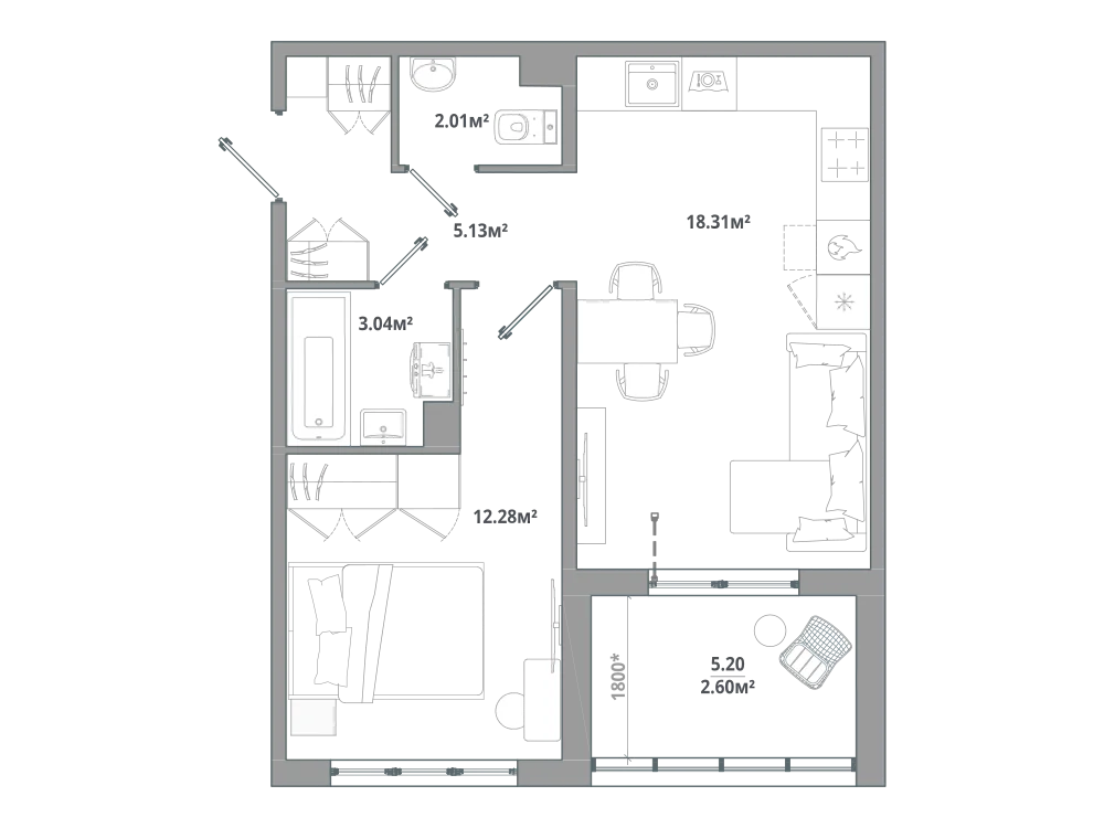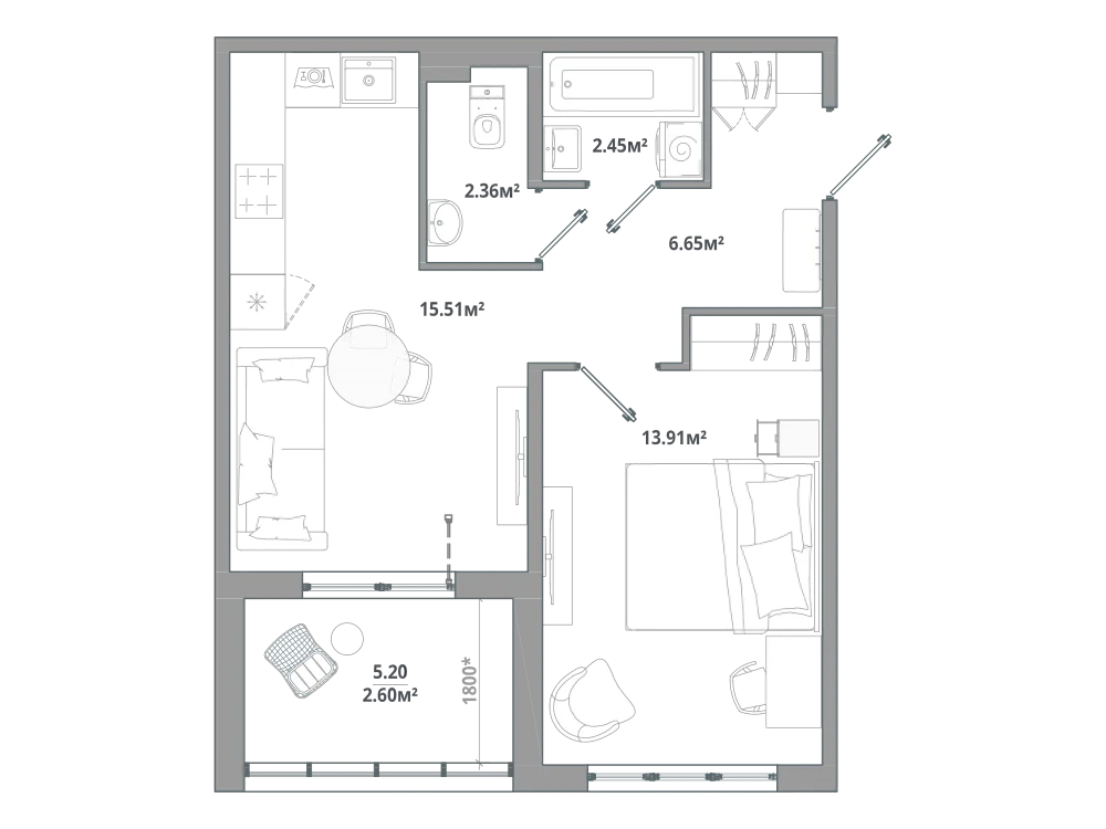 1-комнатная 43.91 м2