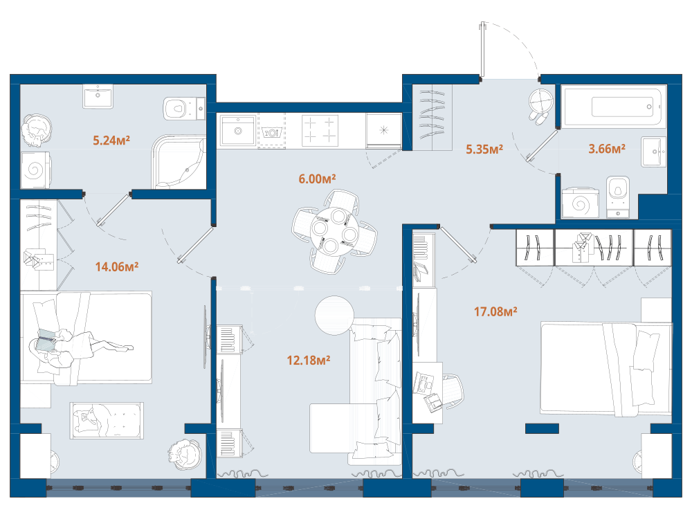 2-комнатная 62.78 м2