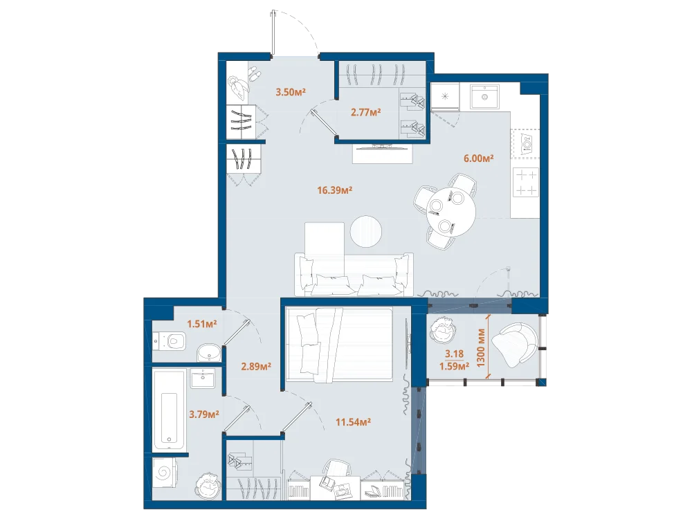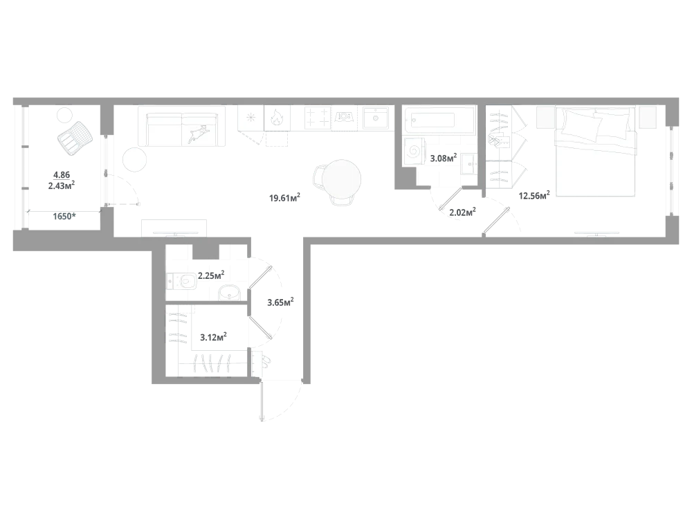 1-комнатная 47.56 м2