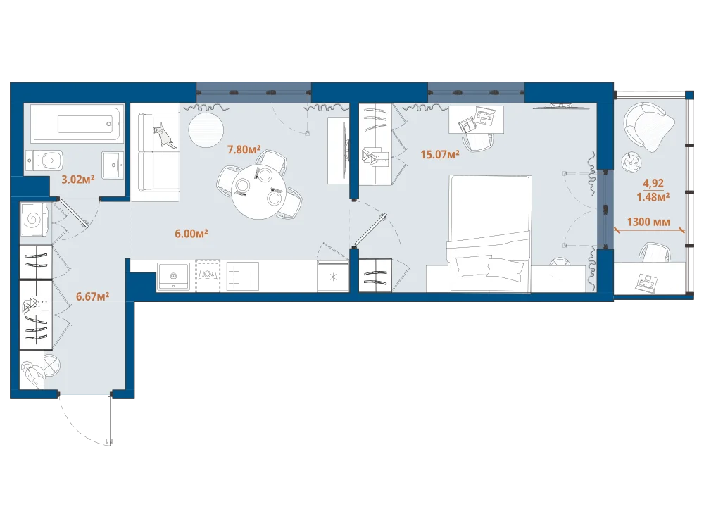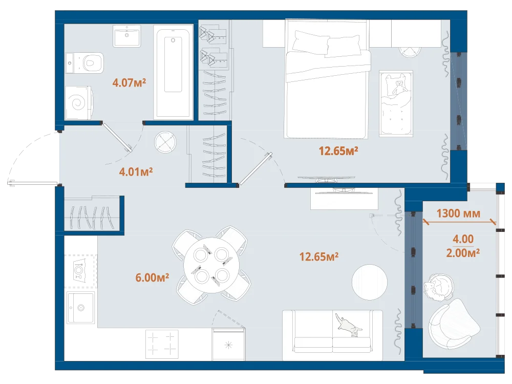 1-комнатная 41.54 м2