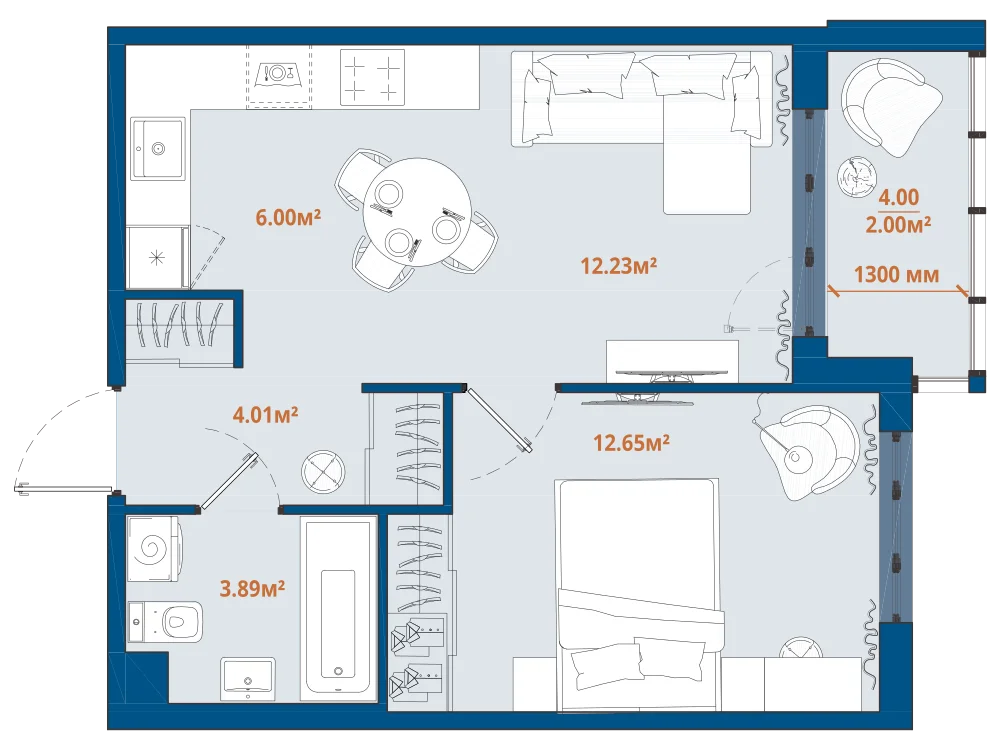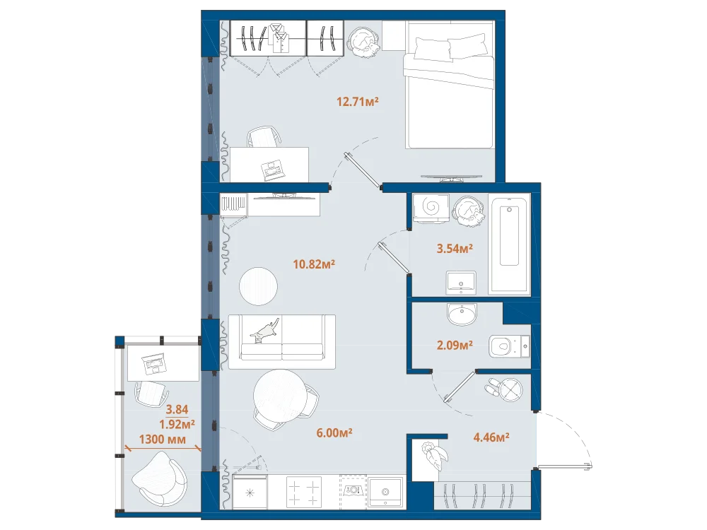 1-комнатная 39.56 м2